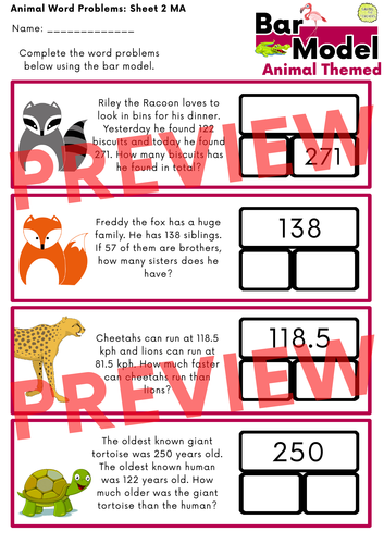 Animal Word Problems Teaching Resources | Teachers Pay Teachers animal themed word problems - addition and subtraction with answers within 20 this resource includes:these interactive activities will allow students to see how to solve a word problem in more than one way and help develop their understanding of adding and subtracting better.students solve five different types of word problems add totake fromput … Animal Math Worksheets (1-10) - Simple Fun for Kids These math worksheets are perfect for those kids who are learning to count with easy addition and subtraction questions for your little ones. These were created with a fun animal theme with 8 pages of cuteness. There are 2 pages of counting, 2 pages of addition, 2 pages of subtraction and 2 patterning pages.